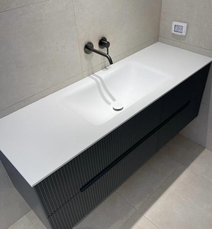 משטח כיור מלבני בגימור מט משי. כיור בשיטת וואקום טרמופורמינג ללא חיבורים וללא תפרים. קיים ב-2 מידות כיור לבחירתכם.