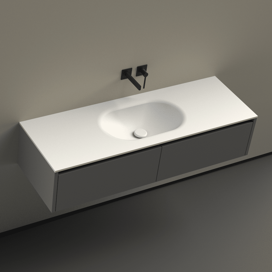 משטח כיור קפסולה בגימור מט משי. כיור בשיטת וואקום טרמופורמינג ללא חיבורים וללא תפרים.
