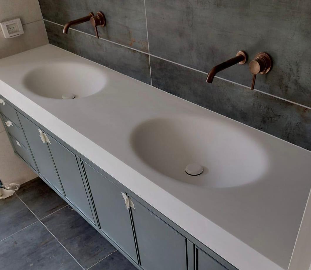 משטח קוריאן עומק עד 65 ס”מ כולל כיור אינטגרלי אובלי, עובי משטח עד 13 ס”מ. ניתן לייצר לפי מידה.