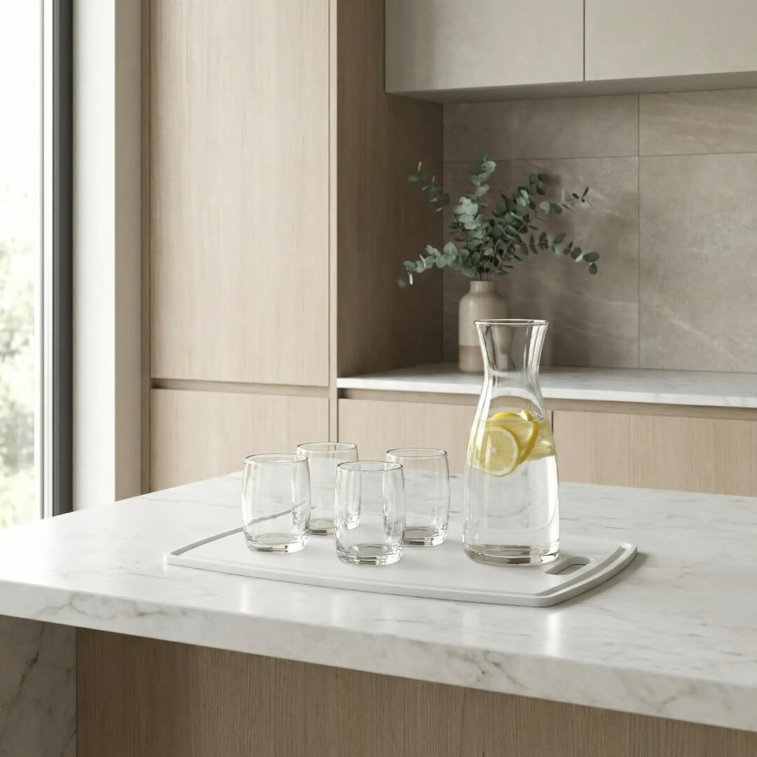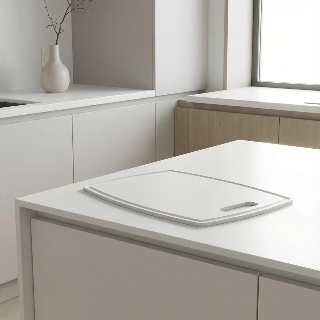 קרש חיתוך אלגנטי ועמיד בעובי 6 מ”מ. קרש אנטי בקטריאלי שאינו סופג נוזלים, עמיד בפני כתמים וחיידקים. 35/26 ס”מ
